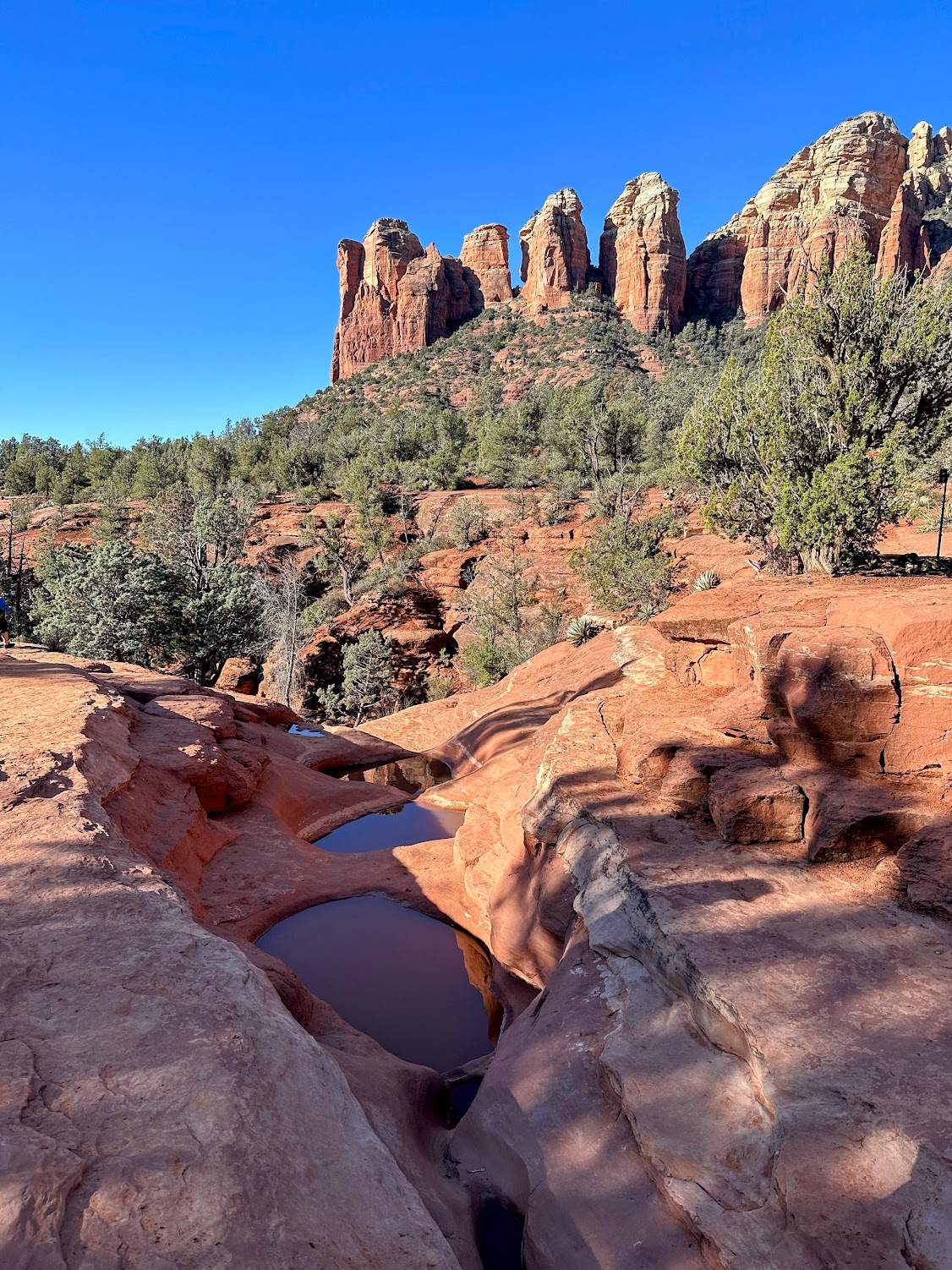 Our other hike- Soldier Pass- led us to a cave, while crossing the ‘seven sacred pools’ on the way. It was a tough hike towards the end because getting into the cave required us to climb this small narrow path but we all did it (me with great difficulty and a lot of support- thank you Ana). After working up an appetite, we stopped by at the town center for a little lunch. It was so fun to walk past all the wellness, crystal, chakra, etc. stores. These stores are a quintessential part of Sedona, not just in the town center but truly everywhere- almost every street corner has its variation of meditation, aura reading, crystal matching shops- that’s the beauty of Sedona, it is unapologetically a self proclaimed wellness destination.