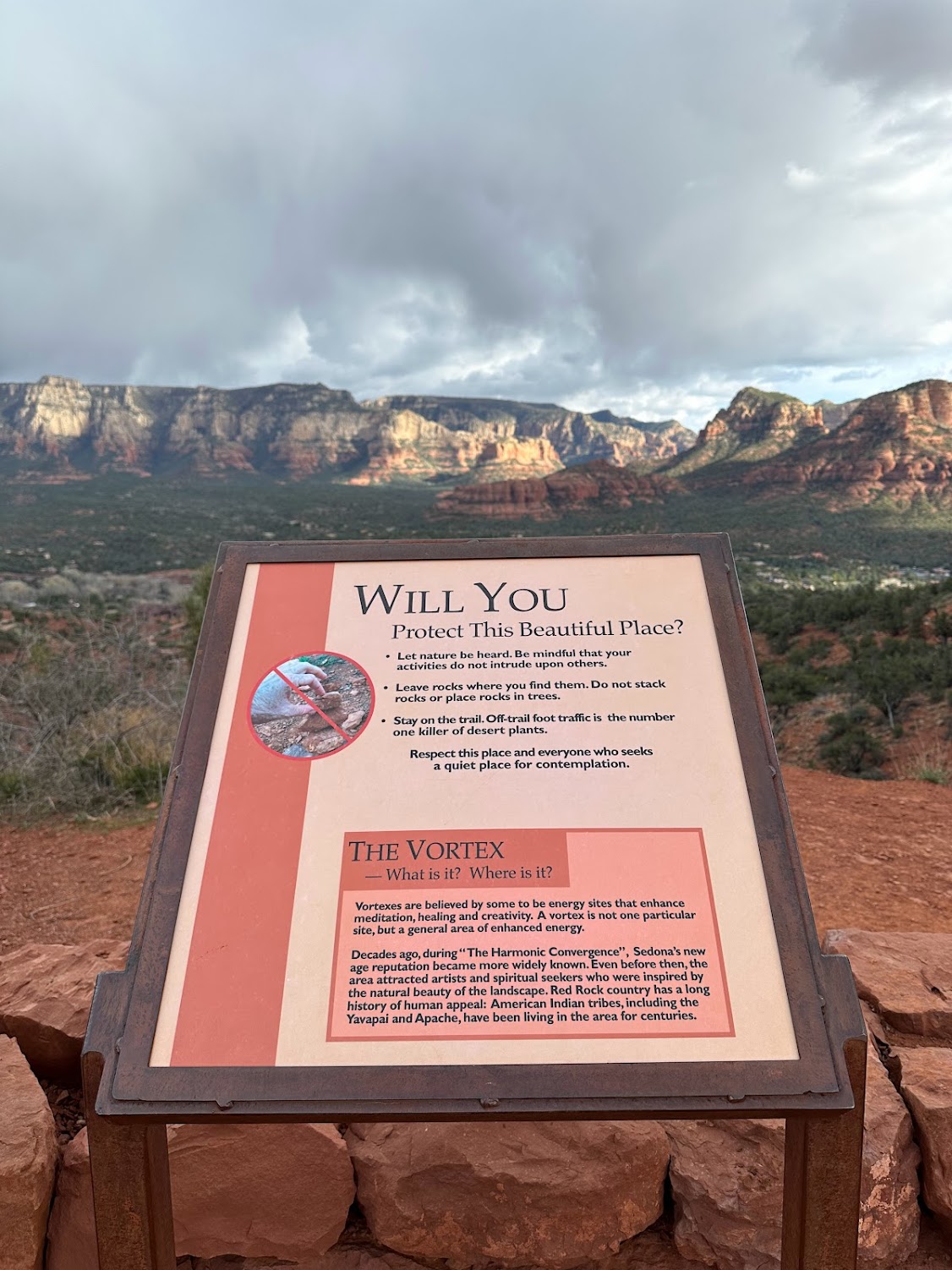 As we drove to Sedona, the landscape gradually started to change with the desert mountains of Scottsdale giving way to these huge red rocks. It was jaw dropping beauty that felt like an AI generated scenery- unreal. The magnanimity of these rocks is unfathomable and uncapturable (trust me, I tried). I took what felt like a million pictures and still came back with not even one that fully justifies its beauty and magic. Speaking of magic, Sedona is known for its ‘magical’ powers- the Vortex (“a swirling center of energy that can produce a range of physical, emotional, and spiritual effects”), the healing power of the red rocks, the spiritual enlightening and whatever other mystic powers you may have heard of. As a person who is equal part skeptic and believer- I’m here to tell you, I didn’t feel any different when we hiked our way to the Vortex- our first vortex experience was at the Airport Mesa hike and second at the Cathedral rock. Even though, there was no shift in my ‘energy’, I did feel the calm of our surroundings. The viewpoints were spectacular- the way the clouds parted to let the rays of sun hit different parts of the red rock formations was something I think every nature lover should experience. It is nothing short of magic 🙂