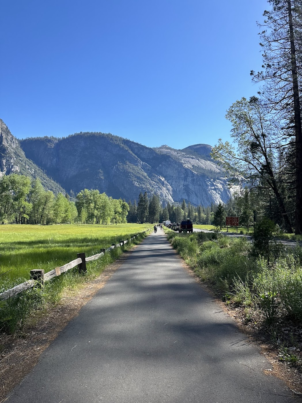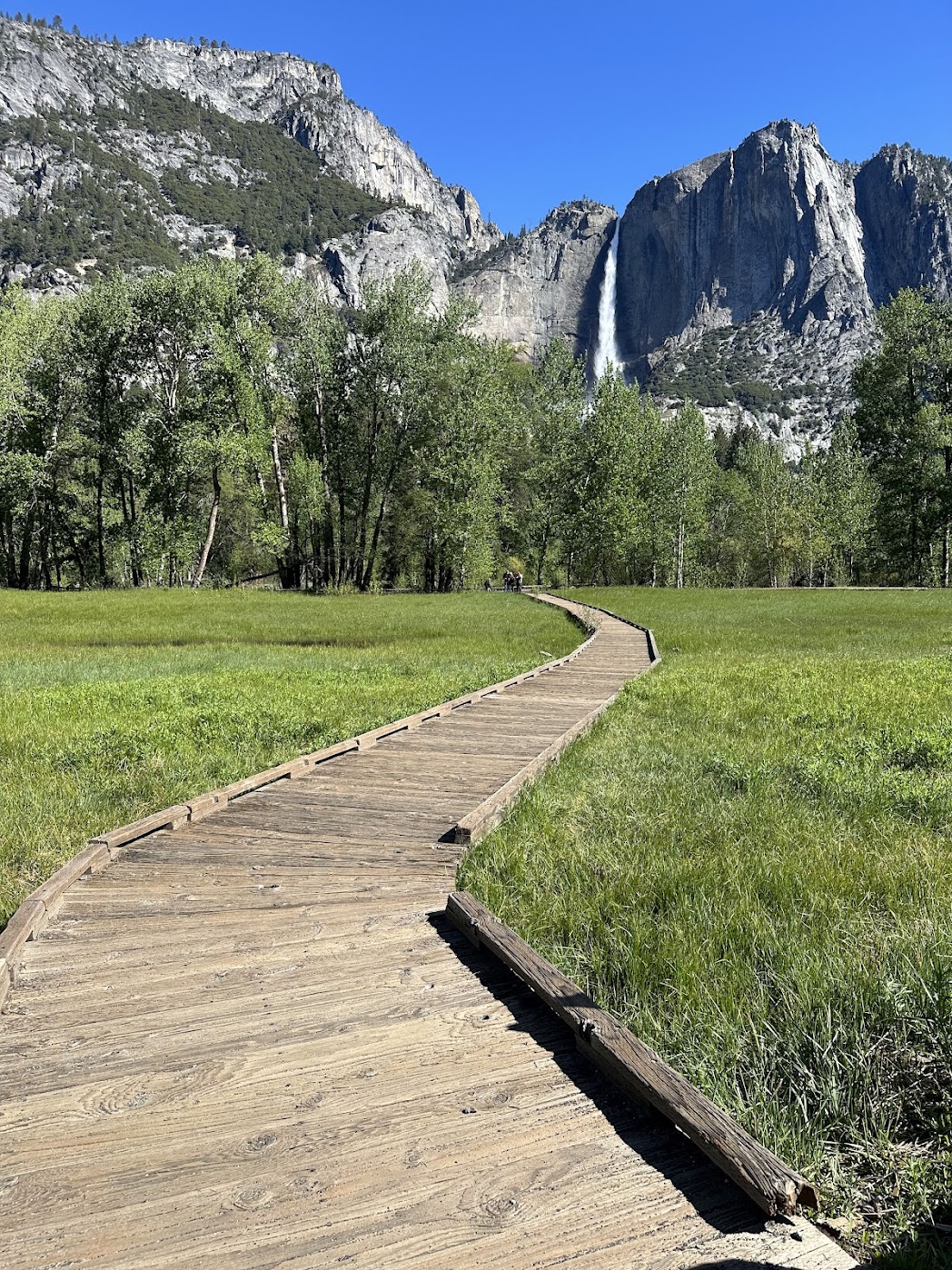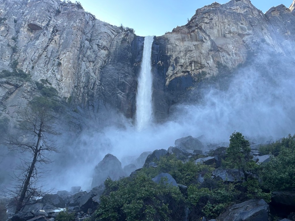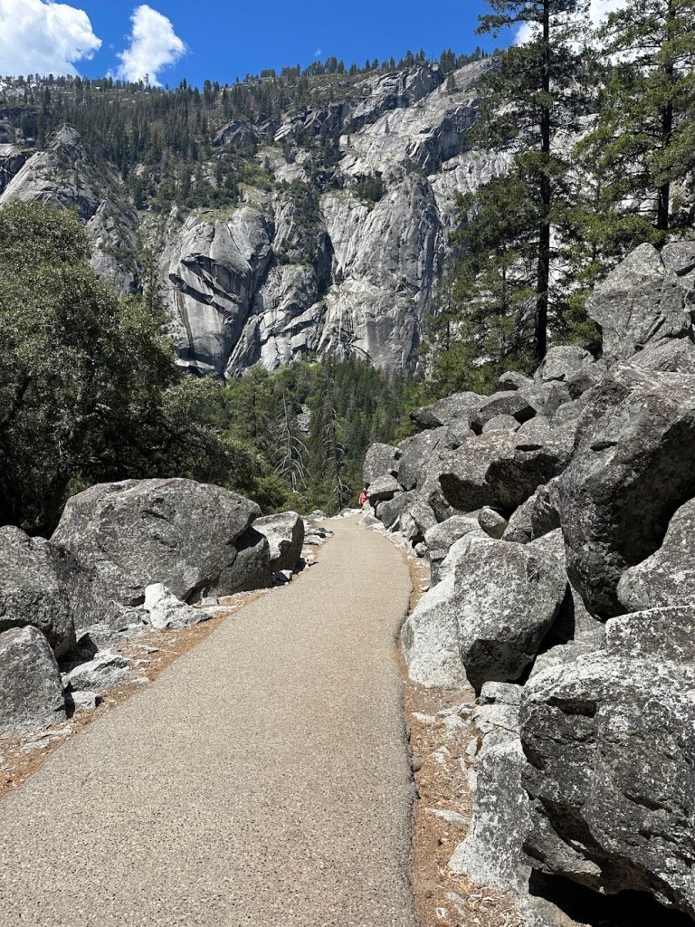 Lower Yosemite Falls– it’s more of a stroll than a hike but you get to see and feel the thunder of the fall. Walking up to it, we thought we were hearing a thunderstorm, which turned out to be just the roaring waterfall. Turns out May (the time we visited) is one of the best times of the year to visit Yosemite because of all the water collected over the rainy months.