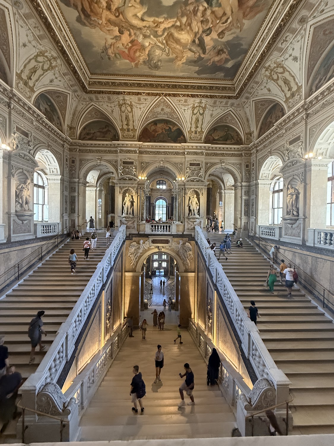 Vienna is divided into twenty three districts. We stayed at the Grand Hotel in the first district, which is the historic center of Vienna known as the Innere Stadt (old town), only a couple of blocks from the famous Vienna Opera house (which unfortunately is not in session during the summer months but was open for the public to visit with a guide), we were also walking distance away from most notable landmarks and numerous museums (there are over 100 museums in Vienna) . The best part about these museums is that many of them are housed in old Imperial palaces; making the experience even more enriching. Although there have been many notable Austrian artists- Klimt for me is the most recognizable. His most famous work of ‘The Kiss’ hangs at the Belvedere Museum as a part of his collection of 24 paintings, all of which reside in this museum. We also visited the Natural History Museum that resides in the Museumplatz (yes, there is a whole museum plaza in Vienna).